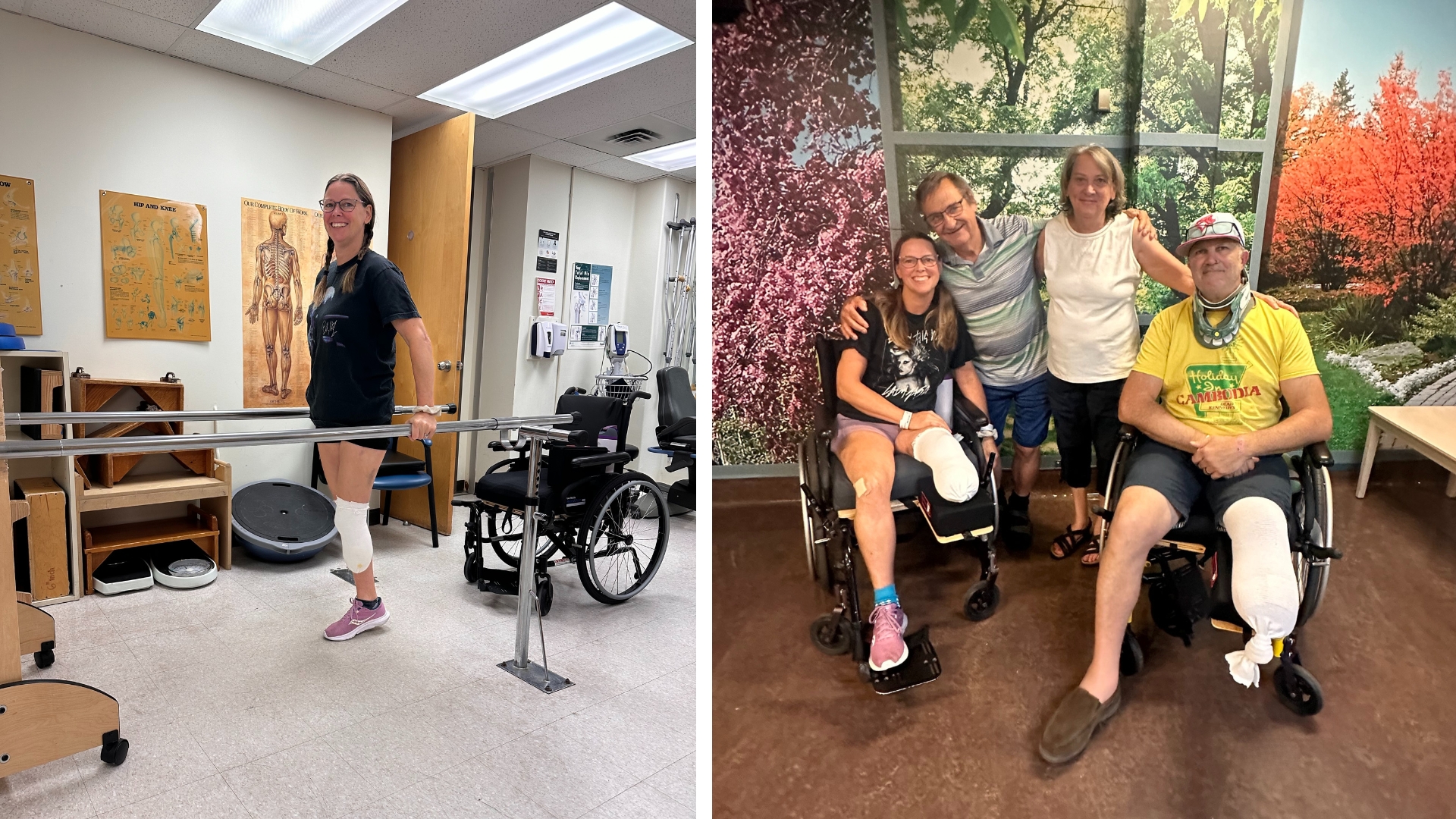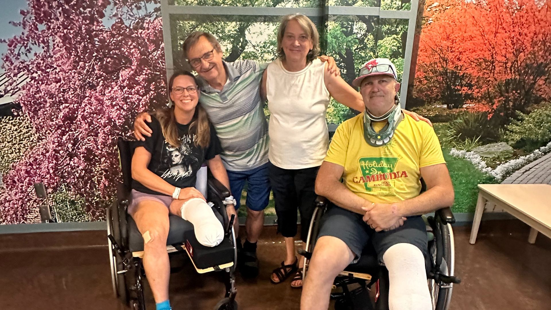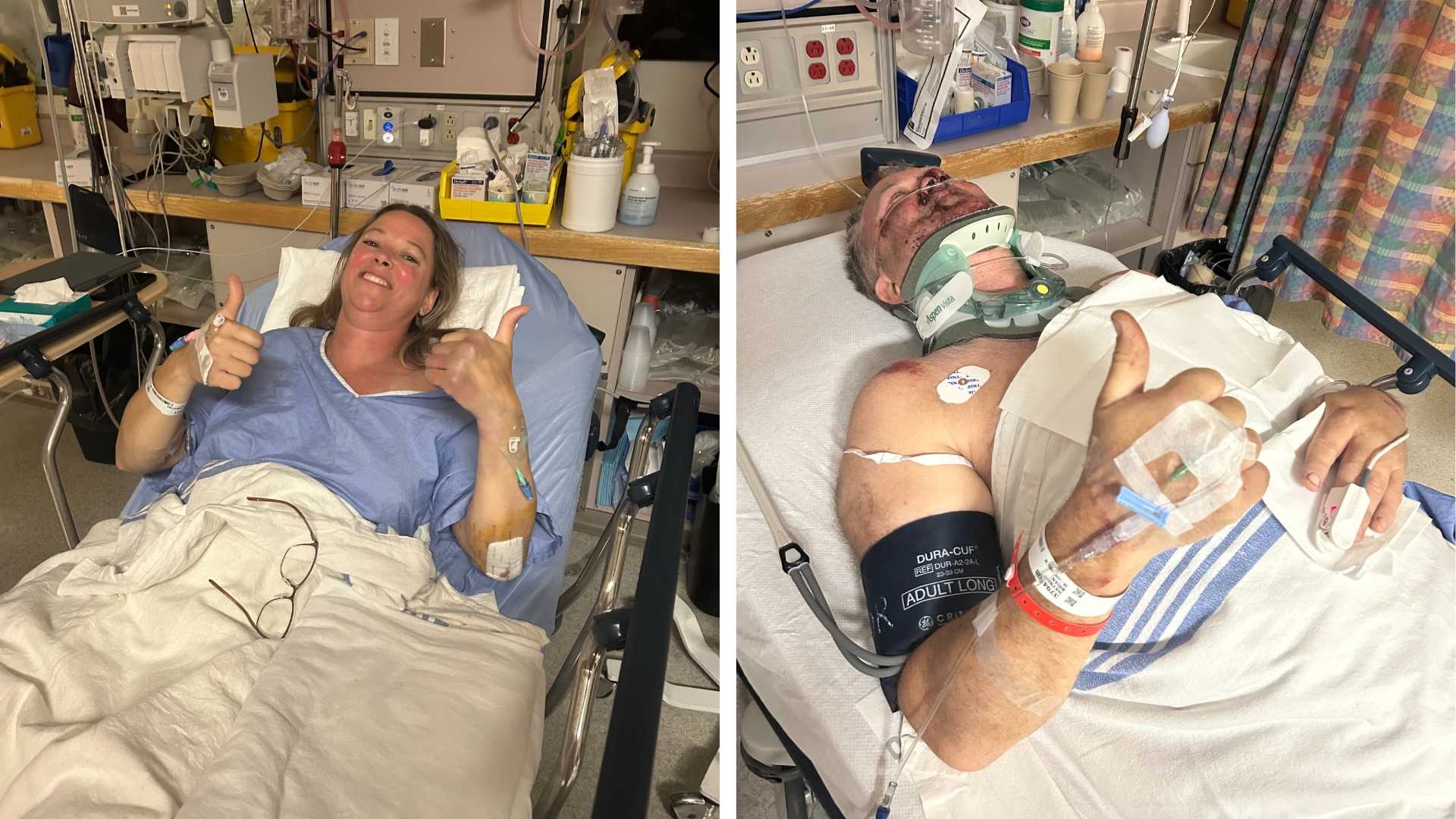 We’ve had the same leg amputated, the same surgeries. I fractured my ribs, spine and neck. Debbie has a broken finger and some pretty bad lacerations.